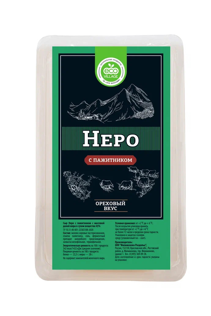 БЗМЖ Сыр полутвердый Неро с пажитником 45% 180г кусок Eco Village Россия