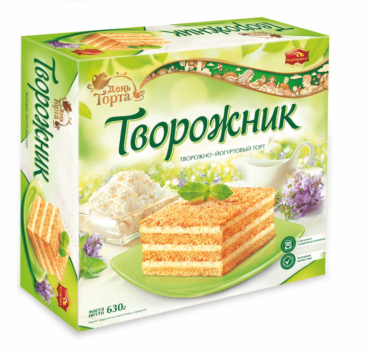 Торт Чародейка "День торта" -классический торт, сочетающий вкус шоколада, воздушного бисквита и сливочного суфле. Уже несколько поколений на протяжении многих лет отдают предпочтение любимому и знакомому с детства торту Чародейка от Черемушек.