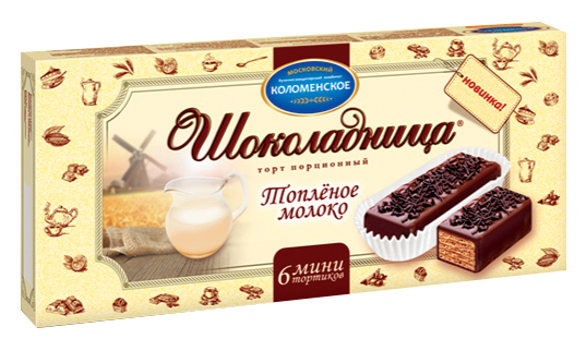 глазурь кондитерская (сахар белый, заменитель какао-масла (рафинированные, дезодорированные растительные масла: подсолнечное, пальмовое, эмульгаторы: сорбитан тристеарат, соевый лецитин, антиокислитель концентрат смеси токоферолов Е306), какао-порошок, эмульгатор соевый лецитин, ароматизатор «Ванилин»), мука пшеничная общего назначения М55-23, сахар белый, жир кондитерский (рафинированные, дезодорированные растительные масла: подсолнечное, пальмовое, антиокислитель концентрат смеси токоферолов Е306), шоколад тёмный (сахар белый, какао тертое, обезвоженный молочный жир, какао-порошок алкализованный, сухое цельное молоко, натуральный ароматизатор: ваниль), молоко сухое обезжиренное, молоко сухое цельное, какао-порошок, эмульгатор соевый лецитин, соль, разрыхлитель - гидрокарбонат натрия Е500, ароматизатор «Молоко». Продукт может содержать следы арахиса, миндаля, фундука.