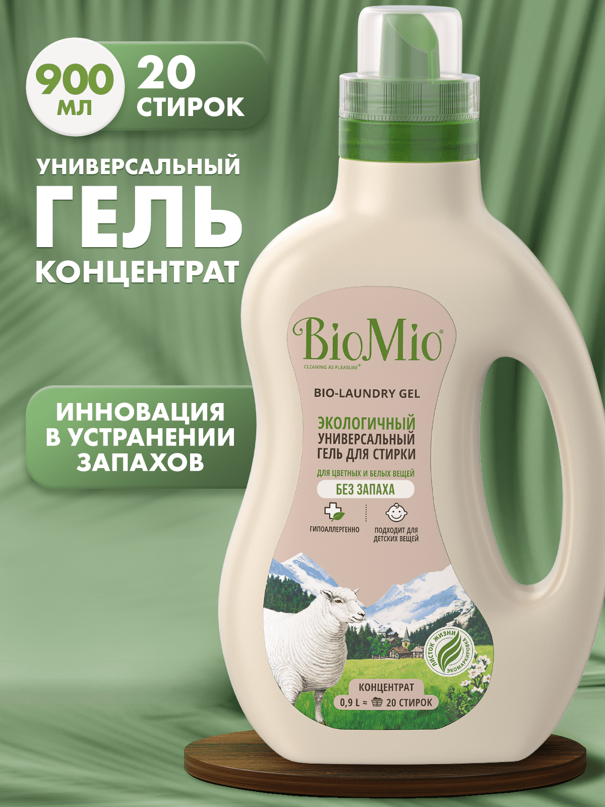 Универсальный экологичный гель BioMio COLORS & WHITES для стирки цветного и белого белья разработан с использованием инновационных технологий. Подходит для всех видов тканей (кроме шерсти, шелка, кашемира и мембранных тканей). Растительные ПАВ в сочетании с энзимами глубоко очищают волокна. Биоразлагаемые циклодекстрины эффективно устраняют запахи. Экстракт хлопка придает мягкость ткани.
