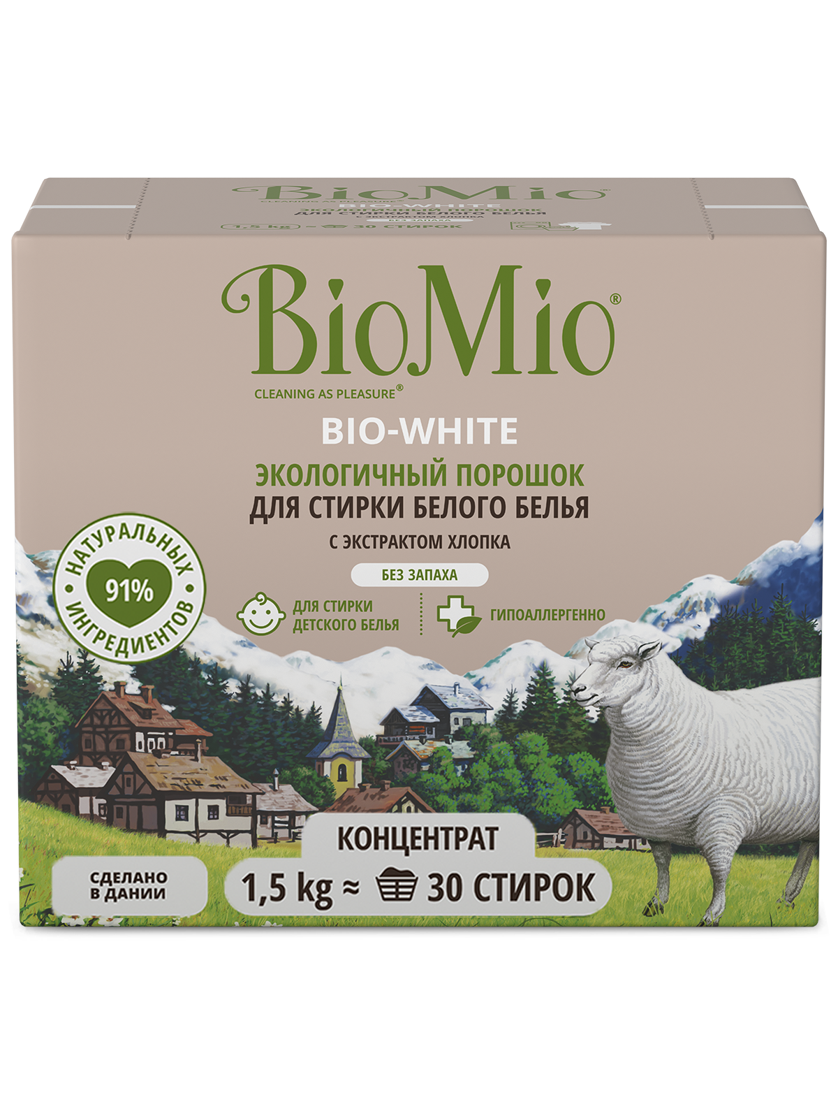 Экологичный стиральный порошок BIO-WHITE для белого белья с экстрактом хлопка эффективно удаляет пятна и загрязнения, не повреждая волокна ткани. Он полностью выполаскивается, исключая попадание на кожу, благодаря чему подходит для детского белья и одежды людей с чувствительной кожей. Стиральный порошок не содержит вредных светоотражающих частиц, которые создают иллюзию чистоты и белизны. Концентрированная формула обеспечивает экономичный расход.