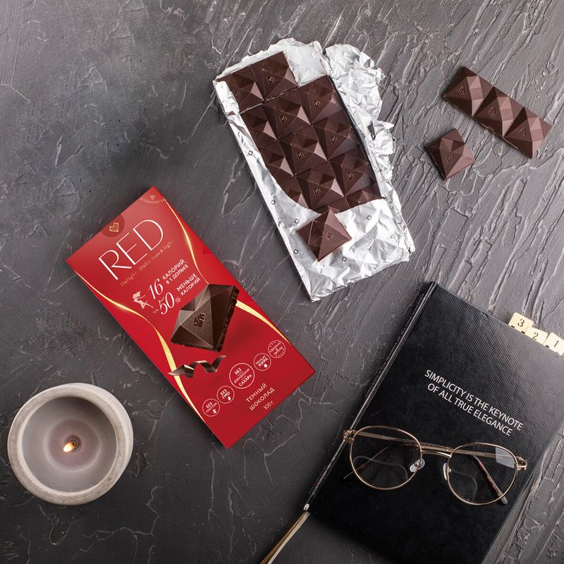 Читмил без чувства вины: в одной дольке шоколада RED всего 16 ккал - как в одной дольке яблока, он сладкий, но без сахара - идеально для читмила (планового нарушения диеты).