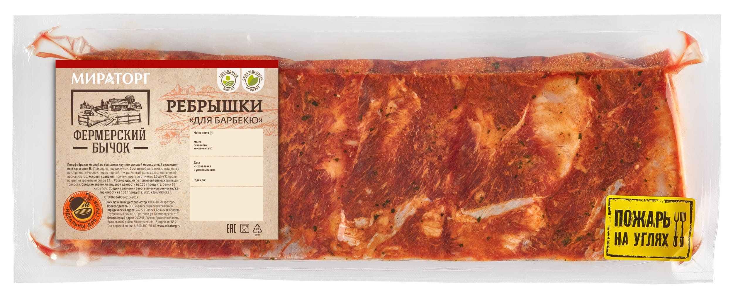 Ребрышки говяжьи для барбекю Фермерский бычок Мираторг ~ 1 кг