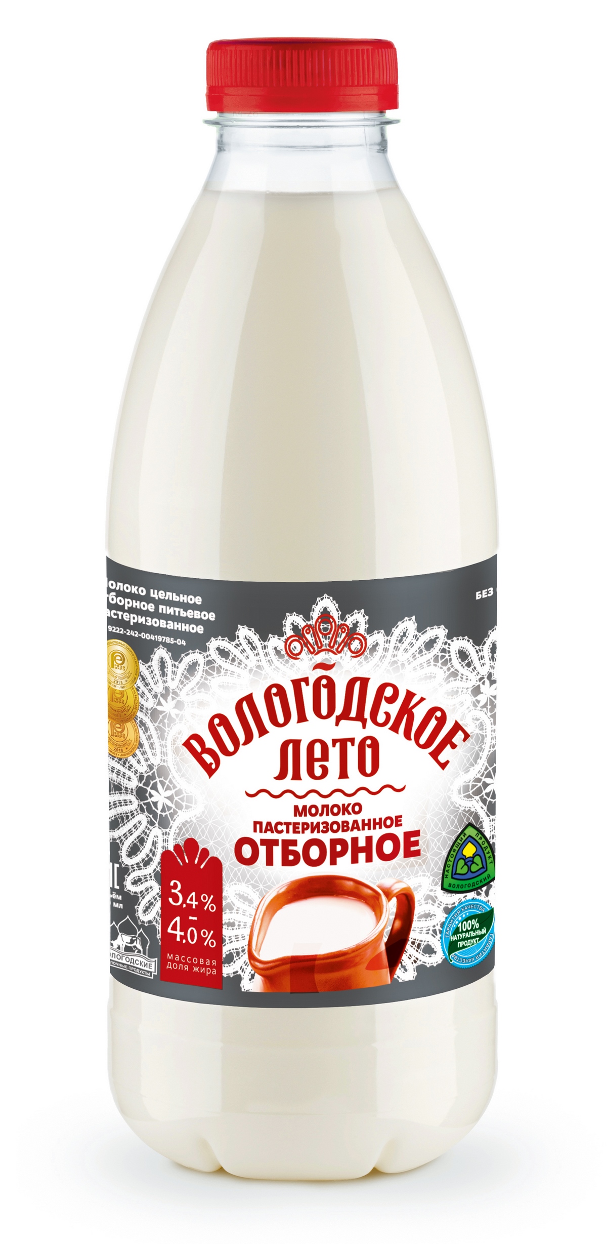 Молоко питьевое пастеризованное Отборное 3,4-4% Вологодское Лето 0,93л