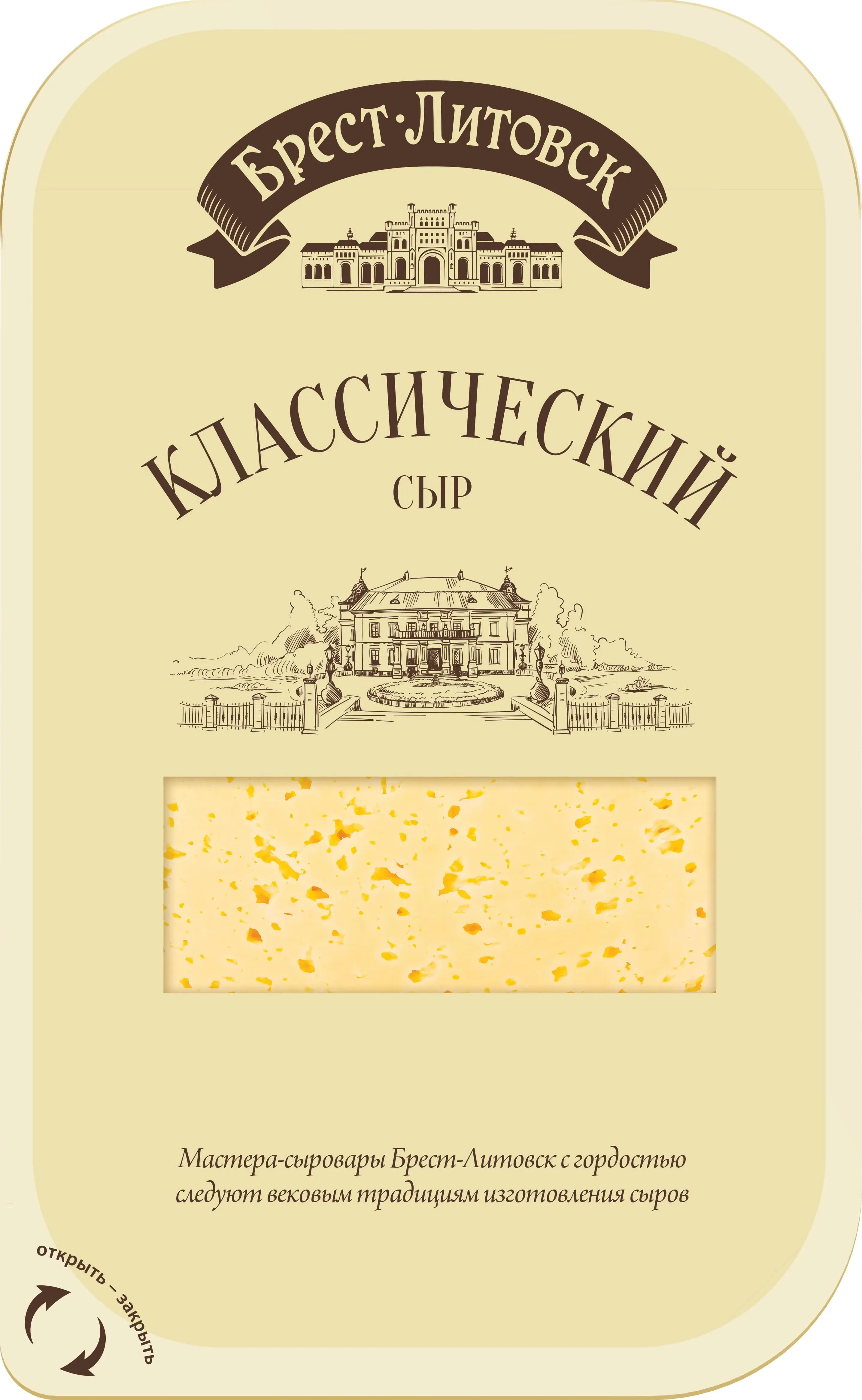 Сыр Классический – полутвёрдый сорт с деликатным сладко-сливочным вкусом и пластичной текстурой. В разрезе он имеет однородный рисунок с глазками неправильной формы, хаотично расположенными по всей площади. Продукт отлично подходит для бутербродов, сырной тарелки, закусочных рулетов. После вскрытия упаковки употребить в течение 15 суток.