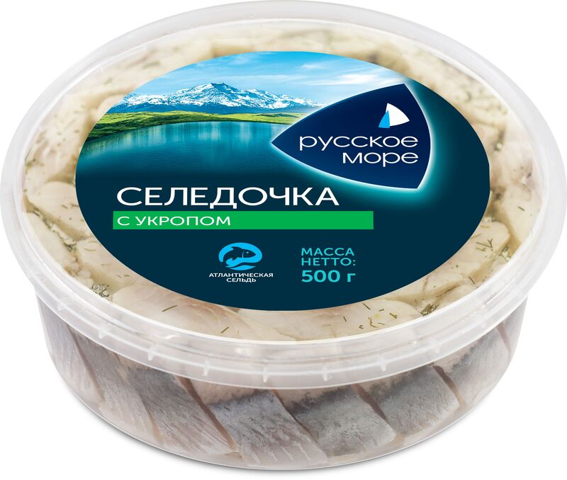 Сельдь филе-кусочки слабосоленая с укропом в масле Русское Море