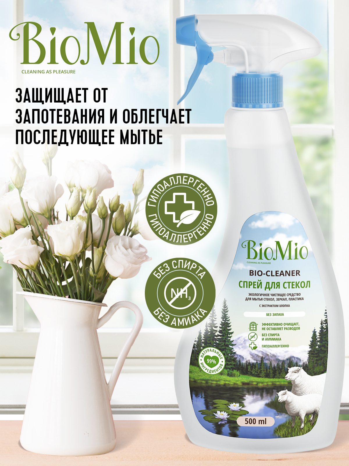 Экологичное чистящее средство для стекол, зеркал и пластика BIO-GLASS CLEANER эффективно и бережно очищает стеклянные, зеркальные и пластиковые поверхности, удаляет грязь, следы от пальцев и мыльный налет, защищает от запотевания и облегчает последующее мытье. Не оставлет разводов. Специальная формула с экстрактом хлопка оказывает мягкое действие на кожу рук. Подходит для использования в домах с автономной канализацией.