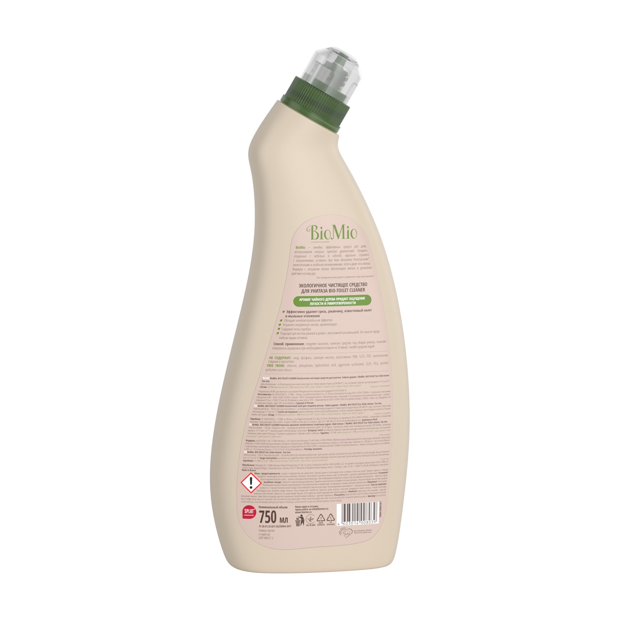 Экологичное чистящее средство для унитаза BIO-TOILET CLEANER с эфирным маслом чайного дерева эффективно удаляет грязь, ржавчину, известковый налет и мыльные отложения, устраняя неприятные запахи. Придает блеск. Входящие в состав ионы серебра обеспечивают антибактериальную защиту, а эфирное масло чайного дерева не только обладает антибактериальным действием, но и придает ощущение легкости и умиротворения. Чайное дерево (Melaleuca alternifolia) из семейства миртовых (Myrtaceae), куда относится также эвкалипт, известно своими целебными свойствами. В состав эфирного масла входят монотерпены (40-50 %), дитерпены (до 40 %) и 1,8-цинеол (3-15 %). Особенно много в эфирном масле ЧД терпинен-4-ола (выше 30%), что обеспечивает выраженный антибактериальный, противогрибковый и противовирусный эффект. Масло чайного дерева подавляет рост таких бактерий, как стафилококки, стрептококки, пневмококки, кишечная палочка, синегнойная палочка. В отличие от антибиотиков, оно не убивает бактерии, вирусы и грибки, а ограничивает их рост и доводит их количество до предельно-допустимой нормы, одновременно стимулируя иммунную систему человека. Такое действие масла можно назвать гармонизирующим и регулирующим. Отлично подходит для использования в домах с автономной канализацией.