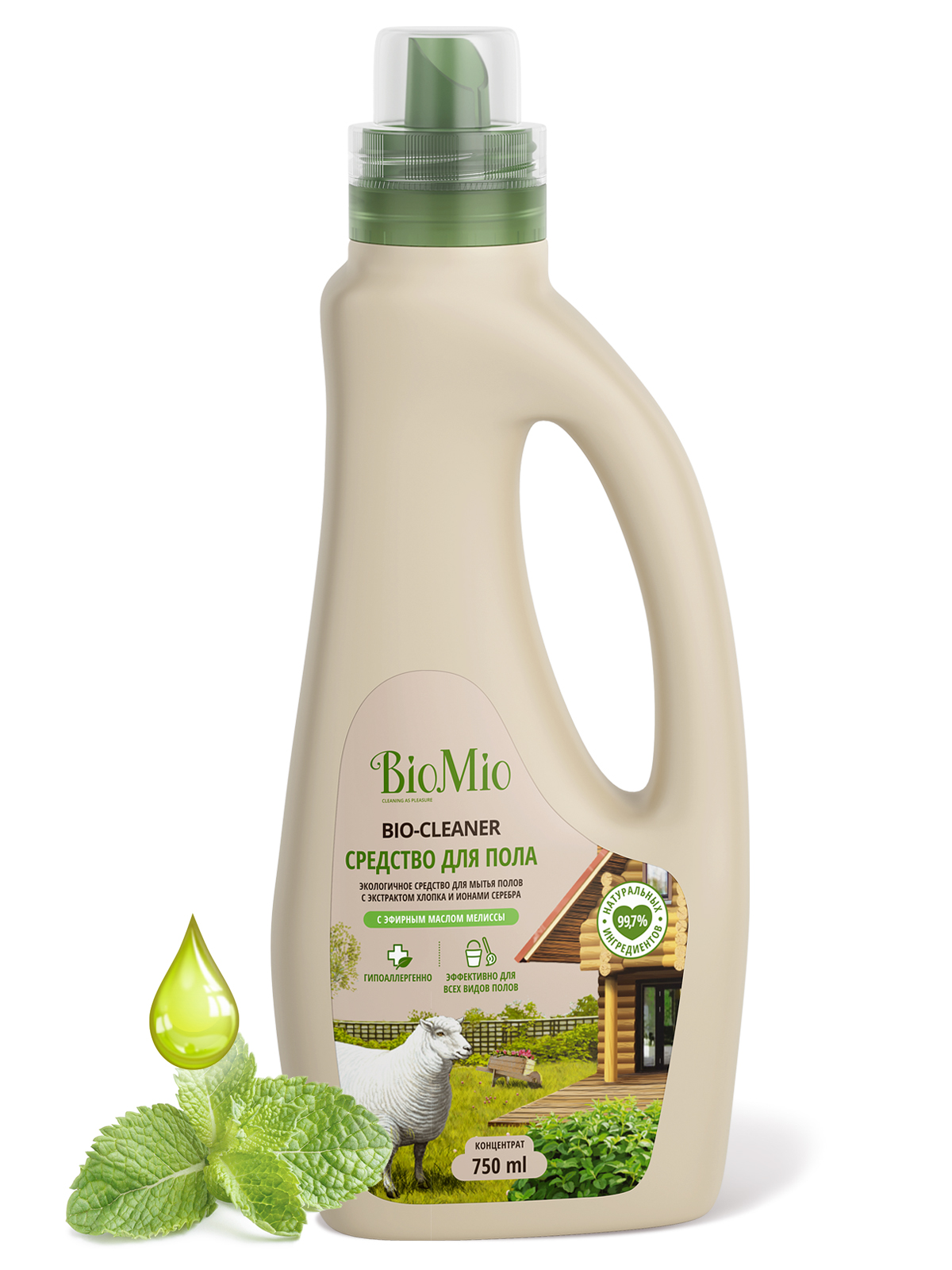 Экологичное чистящее средство для мытья полов BIO-FLOOR CLEANER с эфирным маслом мелиссы эффективно и бережно очищает ламинат, линолеум, паркетную доску, керамическую плитку, пластик, каменные и деревянные полы, устраняя неприятные запахи. Оно не требует смывания с поверхности, не оставляет разводов, придает блеск. Эфирное масло мелиссы поднимает настроение и дарит спокойствие. Концентрированная формула средства обеспечивает экономичный расход. Отлично подходит для использования в домах с автономной канализацией.