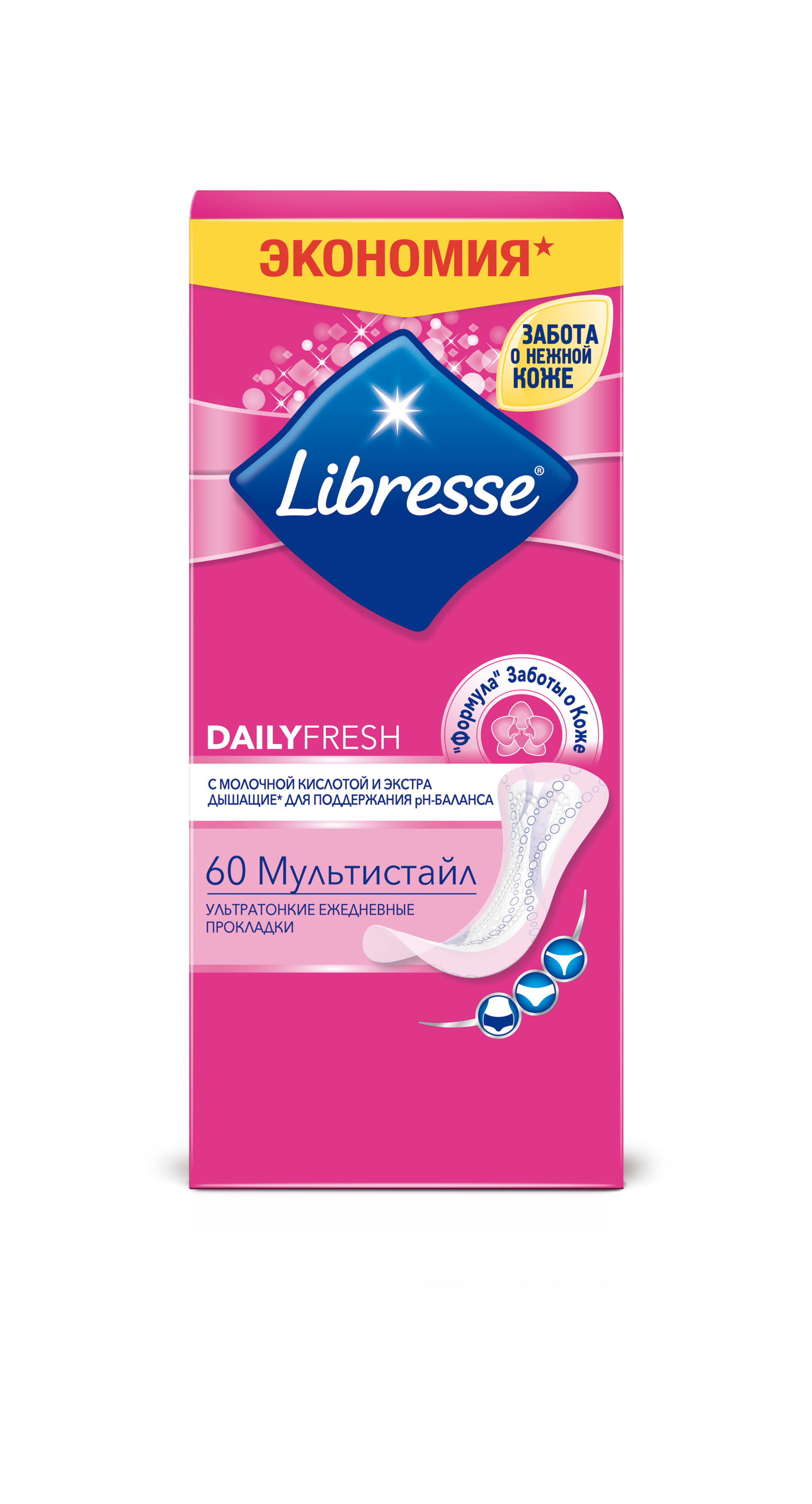 - Наши ежедневные прокладки подходят для любого типа белья, неважно, что ты наденешь сегодня.