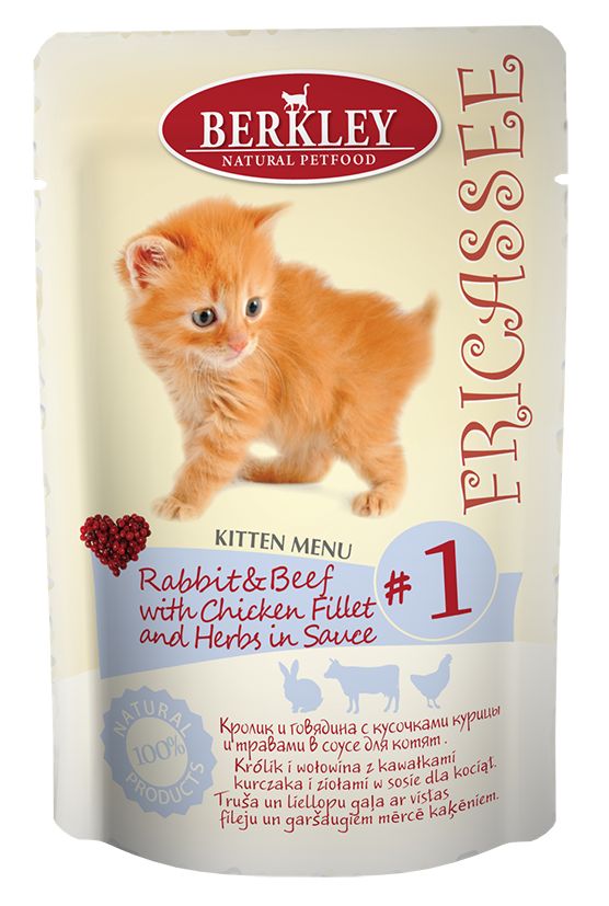 Корм для котят Фрикасе кролик и говядина с кусочками курицы и травами в соусе Berkley
