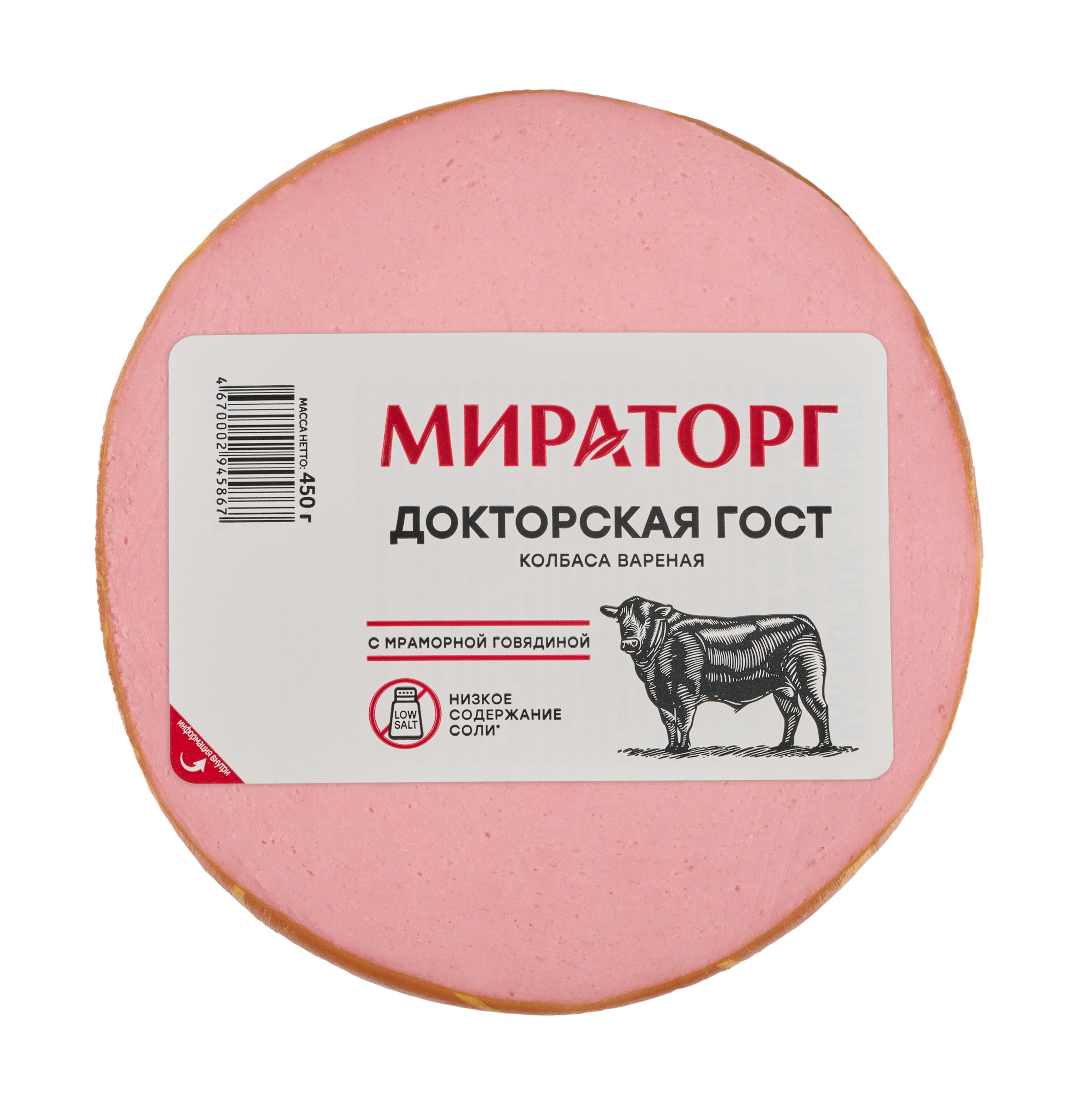 Колбаса "Докторская" приготовлена строго по ГОСТу из мяса собственного производства: отборной свинины и мраморной говядины Black Angus с добавлением молока, яиц и пряного мускатного ореха. Копчение на натуральной буковой щепе придает колбасе тонкий аромат. Срез аппетитного нежно-розового цвета. Отличается классическим нежным вкусом, знакомым с детства.