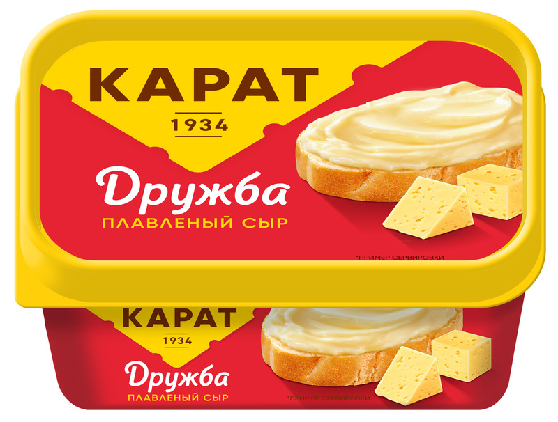 Едва ли в России найдется человек, который не знает этот легендарный бренд! Оригинальная рецептура плавленого сыра "Дружба" была разработана в 1960 году, и на протяжении уже более 60 лет остается визитной карточкой завода "КАРАТ". Твердый сыр, свежий творог, сливочное масло и натуральные пастеризованные сливки – эталонный состав и вкус счастливого детства!