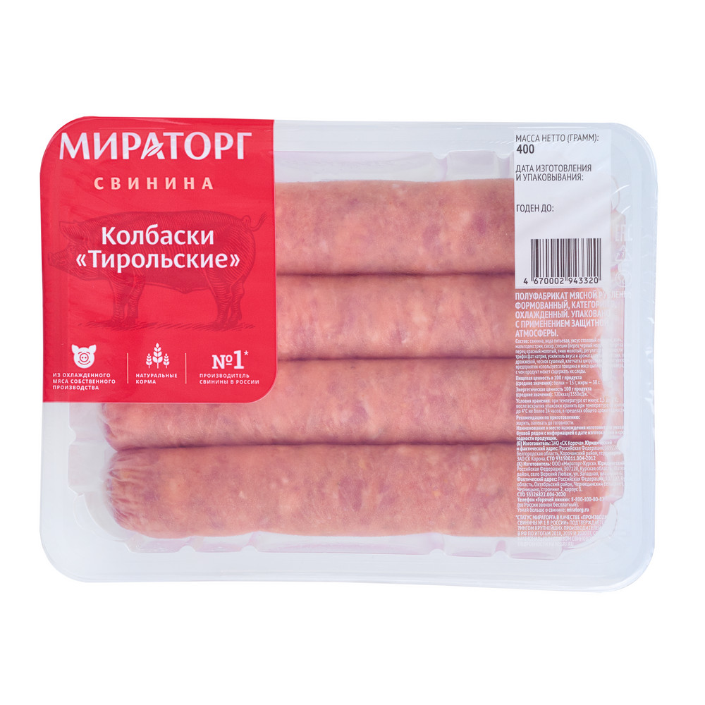 Тирольские колбаски мы приготовили из отборных ингредиентов по старому австрийскому рецепту. Сочная свинина, смесь острых перцев, душистый фенхель и тмин — то, что нужно для правильного гриля.