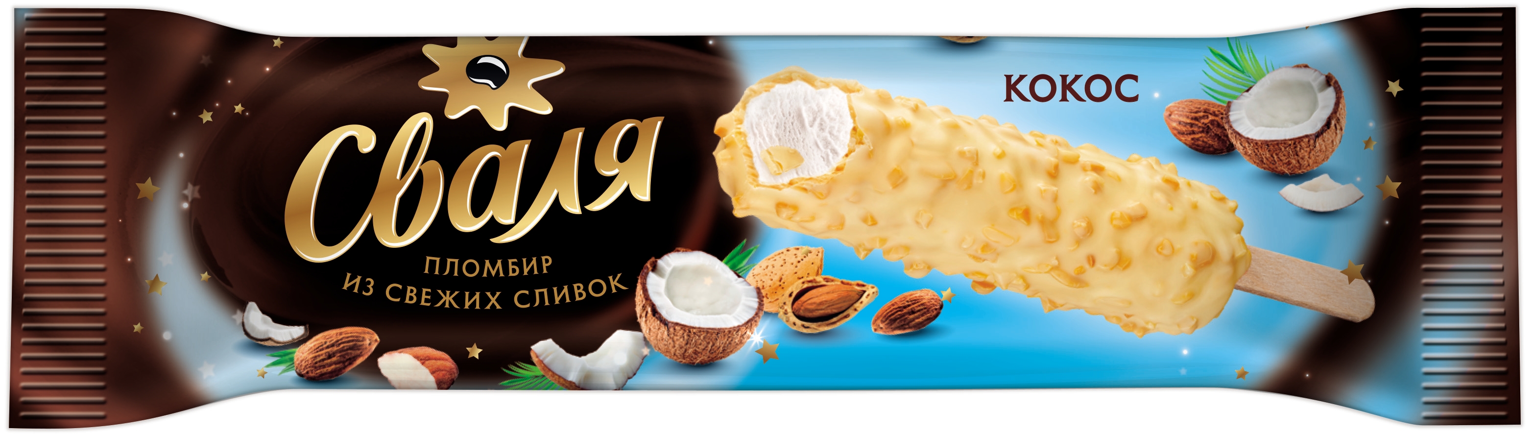 Эскимо 8% сл.Кокос в мол.гл. с миндалем 63г Сваля