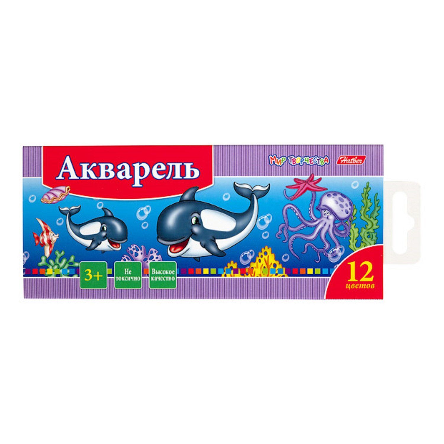 Краски Акварель Дельфины мед. полусух. 24цв б/кисти пласт. пен. Hatber