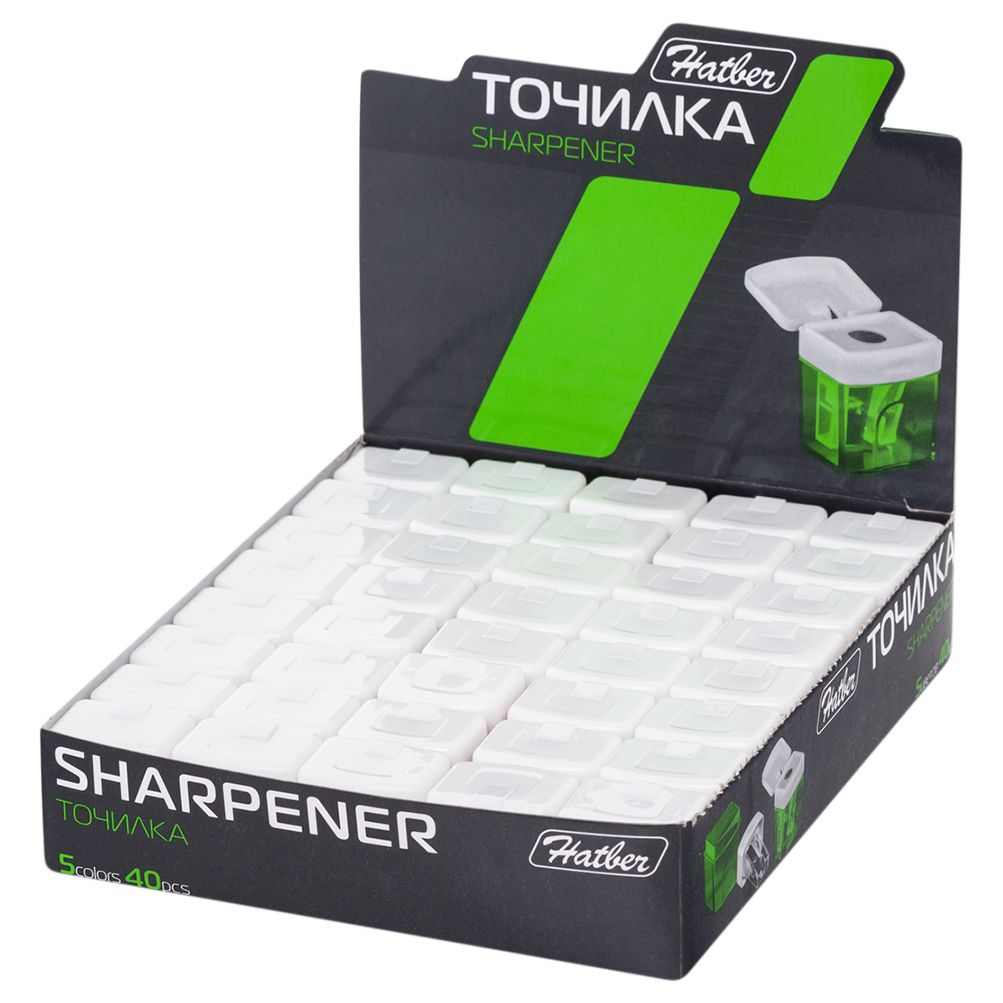 Точилка Ассорти пласт. цвет. 5цв картон. короб Hatber