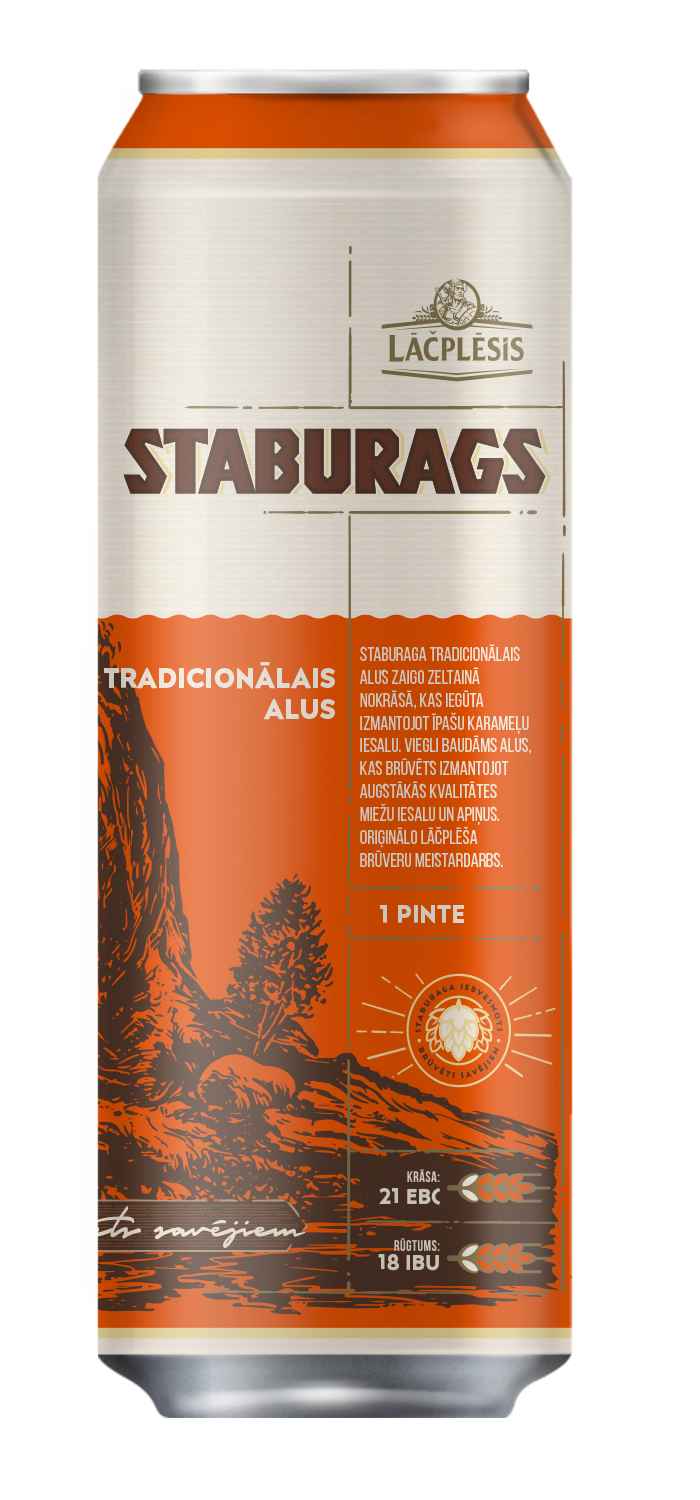 Светлое пиво Staburags варится по традиционным латышским рецептам с использованием ингредиентов высшего качества. Он переливается алыми золотыми оттенками, а во вкусе присутствует легкая горчинка, дополняющая медово-сладкие оттенки благородного мюнхенского солода. Это пиво навевает мысли о восходе солнца над обрывистыми берегами Даугавы и о незабываемом виде скалы Стабурагс.