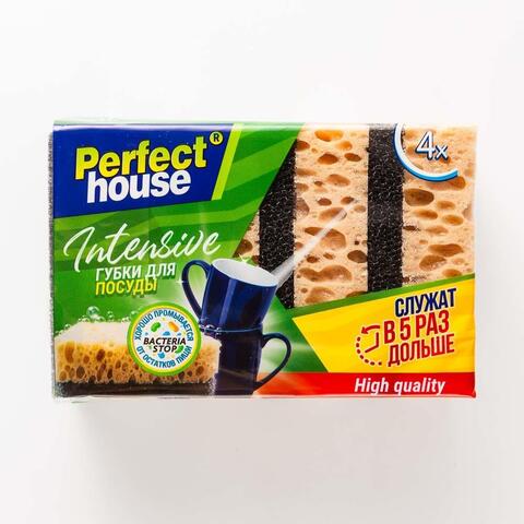 Губки для мытья посуды Intensive торговой марки Perfect House в 5 раз дольше служат, чем стандартные поролоновые губки.