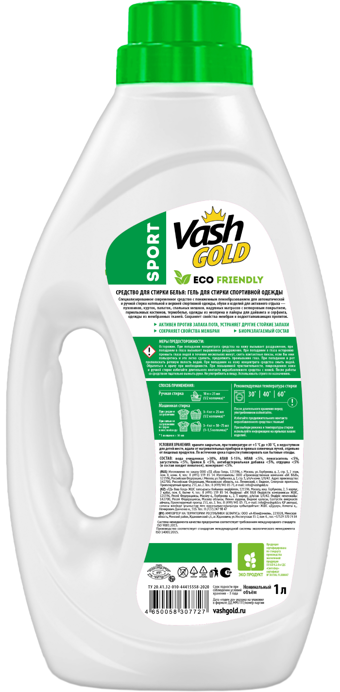 Гель для стирки SPORT суперконцентрат "Eco Friendly" Vash Gold