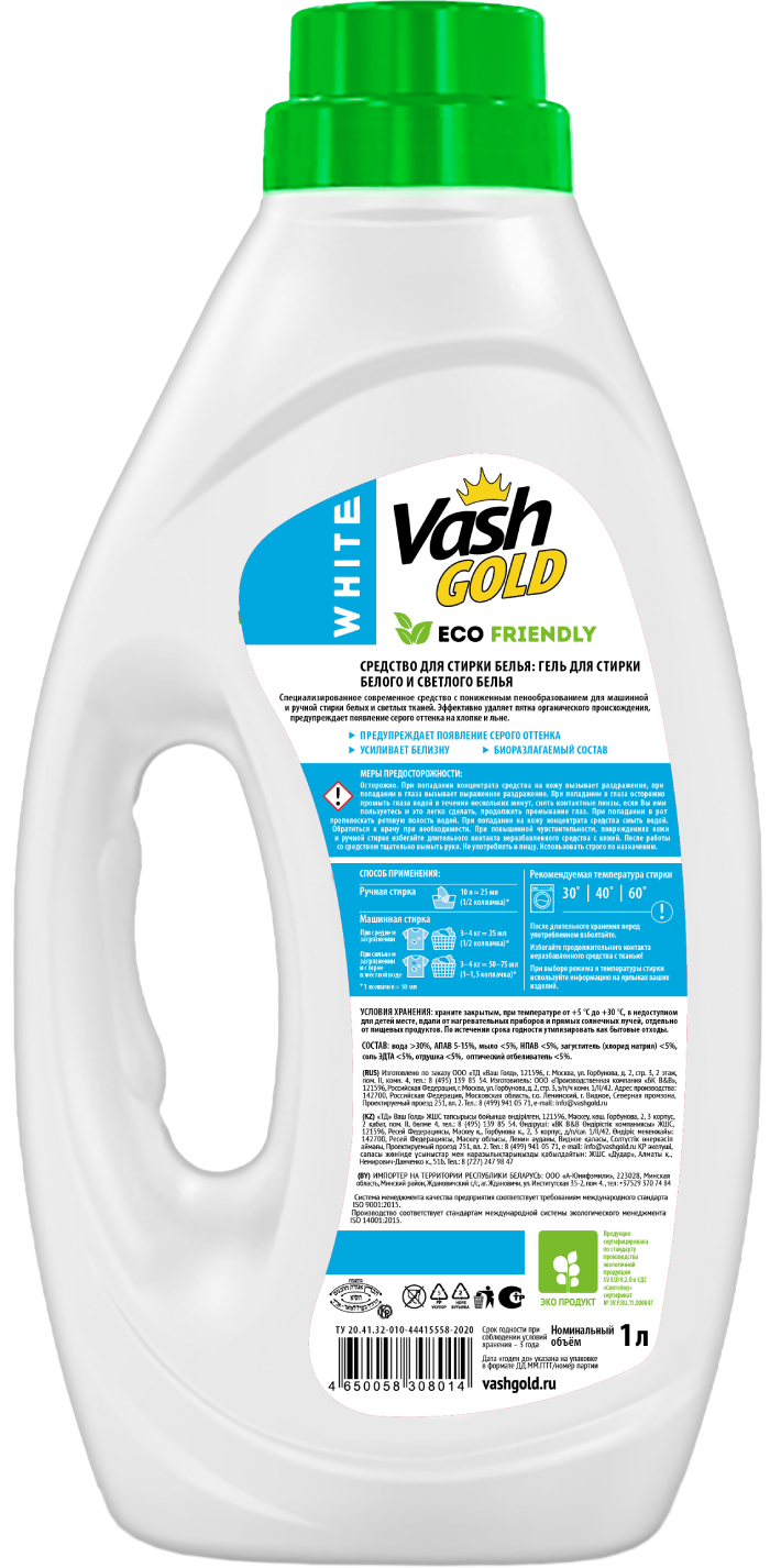 Гель для стирки WHITE суперконцентрат "Eco Friendly" Vash Gold