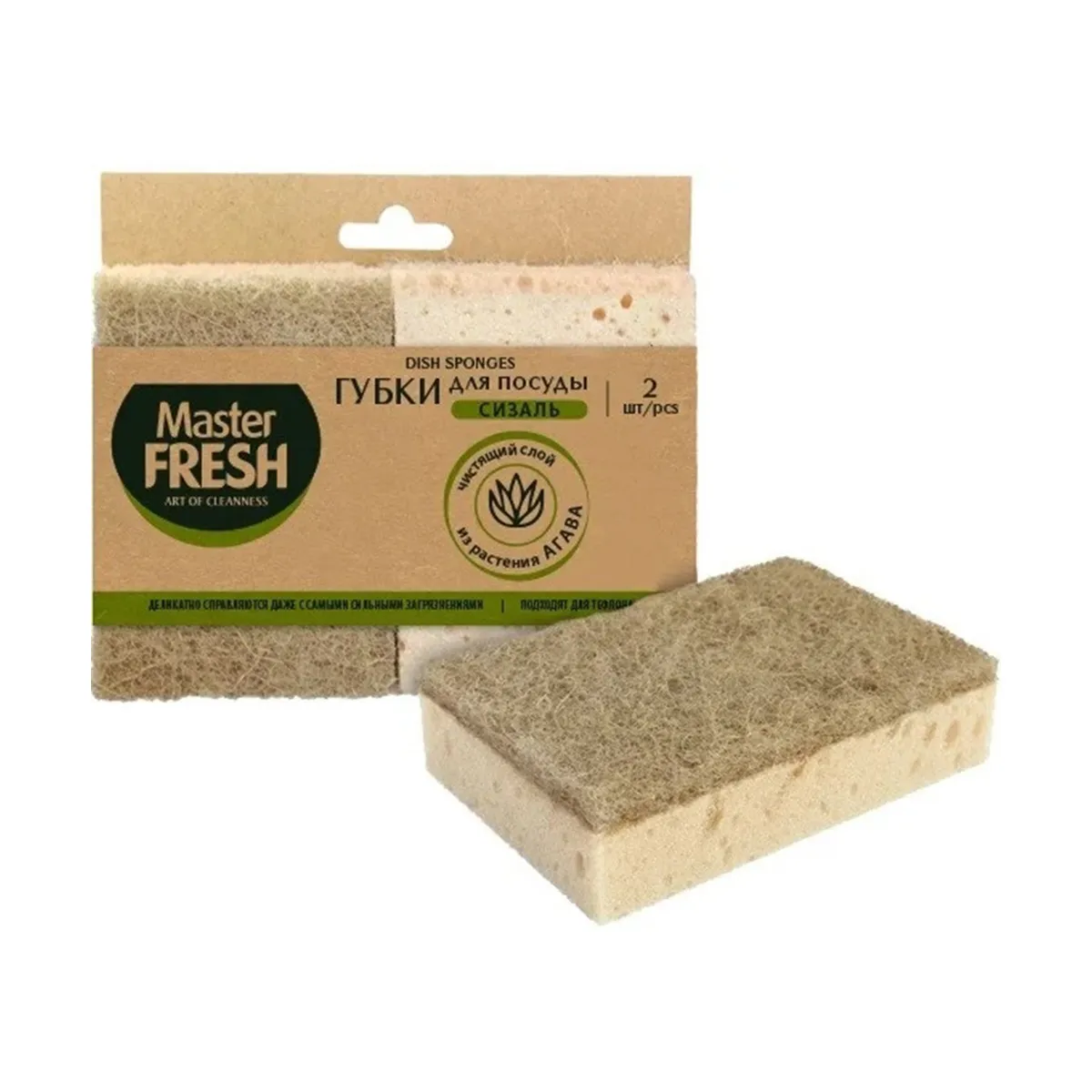 Целлюлозные губки Master Fresh – это уникальное сочетание целлюлозы и сизаля. Чистящий слой сизаль – это экологически-чистый материал, получаемый из листьев растения агава. Не содержит абразивных частиц, идеально подходит для уборки деликатных поверхностей из тефлона, закалённого стекла, акрила и пластика, но при этом великолепно справляется с сильными загрязнениями.