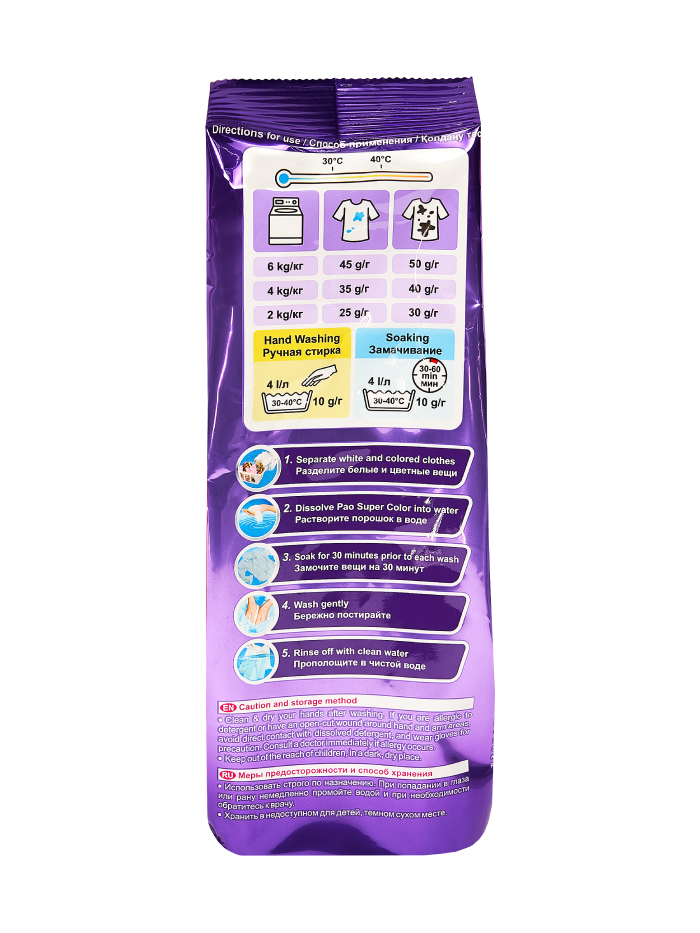 Стиральный порошок Lion Pao с формулой «Super Color» для стирки белья и защиты цвета. Сохраняет ткань яркой и предотвращает выцветание, чтобы одежда всегда выглядела как новая. Формула с ферментами удаляет стойкие пятна и облегчает стирку. Убивает 99,99% вирусов и бактерий. Полностью устраняет неприятные запахи, придает вещам аромат чистоты и свежести, словно они только что из прачечной. Рекомендуется для хлопка, синтетики, вискозы. Подходит для ручной и машинной стирки. После стирки вещи можно сушить в помещении.