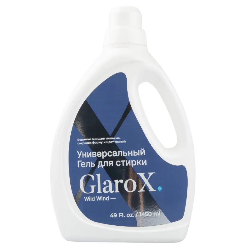 Универсальный гель для стирки Glarox. Стредство для стирки одежды любых цветов. Подходит для всех цветов и типов тканей, эффективен при стирке от 20°С, полностью вымывается из ткани, содержит органические кондиционирующие добавки.