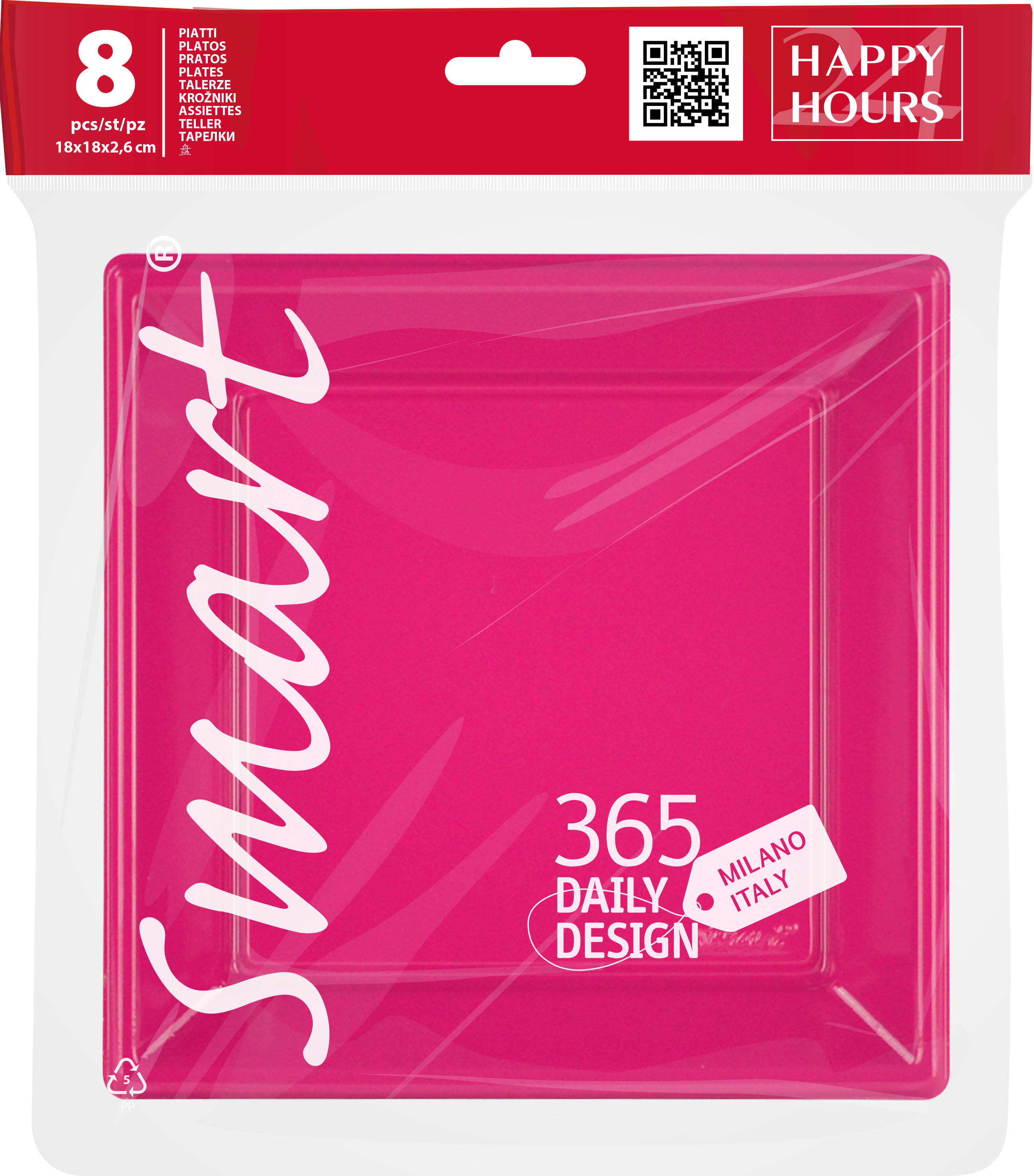 Тарелки пластиковые 18х18см 8шт фуксия Smart