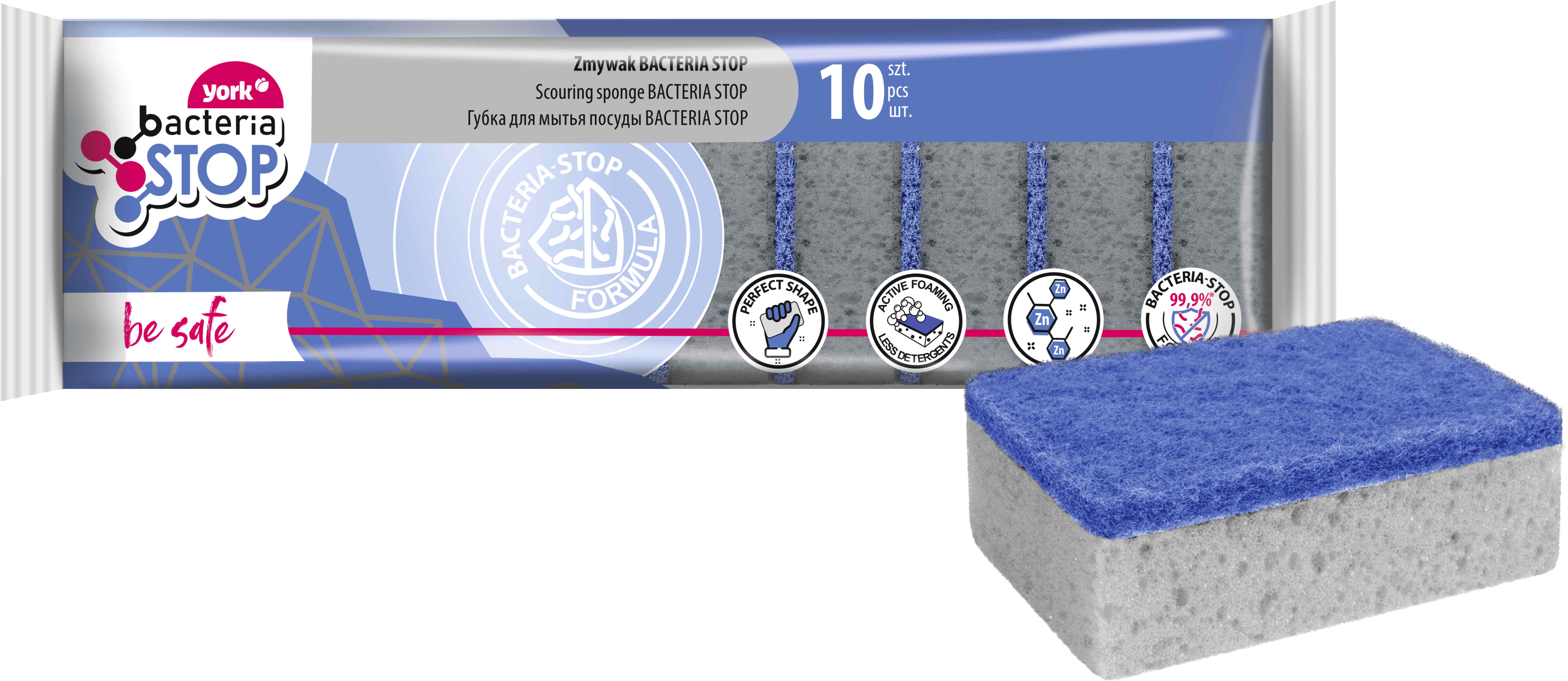 Губки для посуды антибактериальные YORK БАКТЕРИЯ СТОП 10шт.