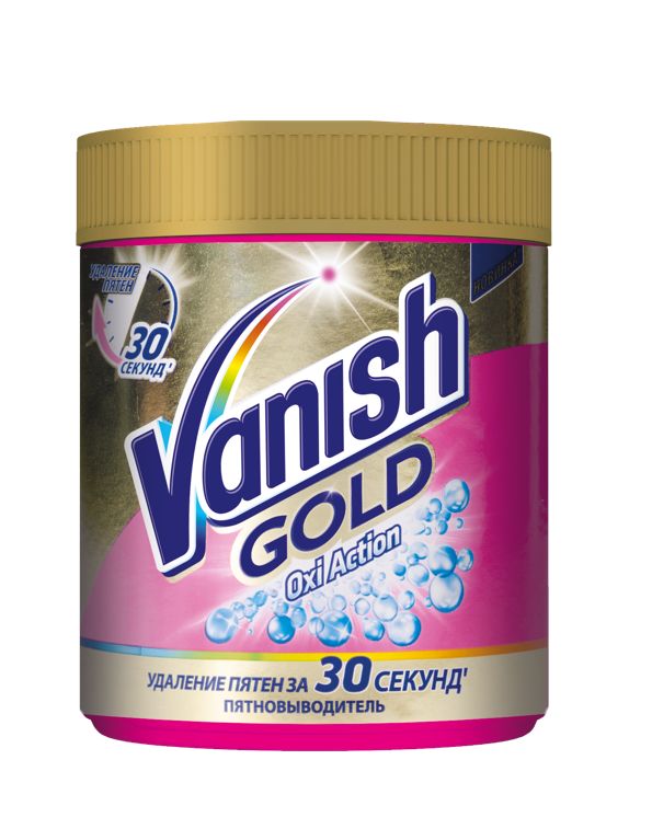Vanish Gold Oxi Action – лучший пятновыводитель Vanish. Новая формула порошка настолько эффективна, что справляется с пятнами всего за 30 секунд. Безопасен для белых и цветных вещей.