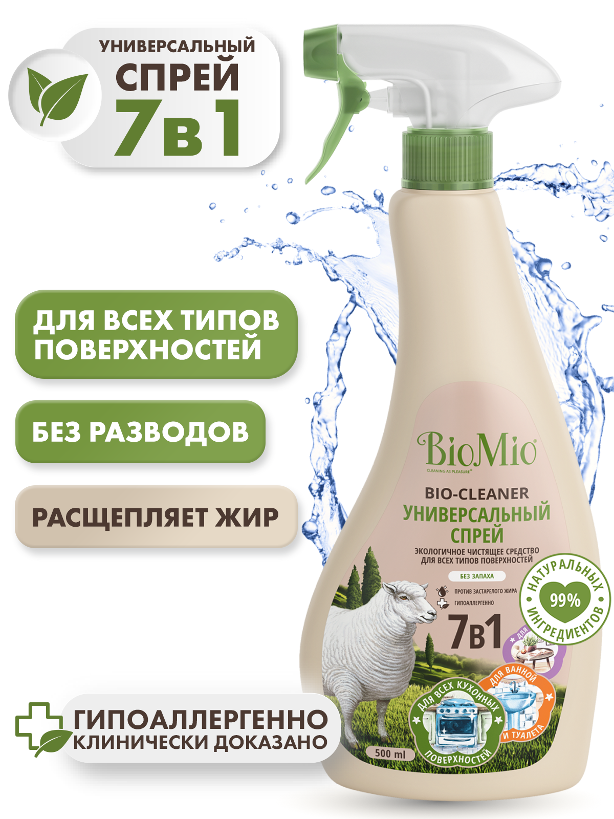 Экологичное универсальное чистящее средство BIO-MULTI PURPOSE CLEANER. Бережно очищает деревянные, керамические, стеклокерамические, эмалированные, пластиковые, стеклянные и стальные поверхности. Эффективно удаляет бытовые загрязнения, в том числе пригоревший жир и известковый налет. Легко смывается, не оставляя разводов. Содержит ионы серебра. Безопасно для планеты.