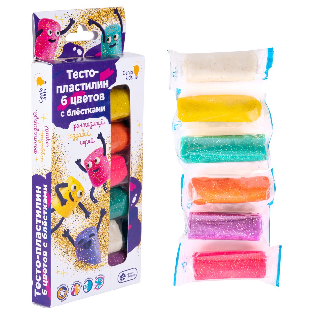 Набор из теста-пластилина с блёстками, 6 цветов по 30 грамм.