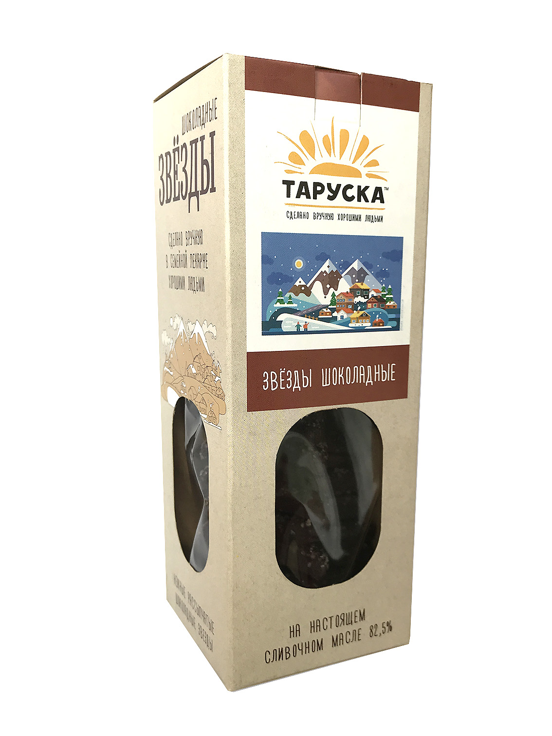 Печенье Звезды Шоколадные - рассыпчатое песочное печенье с добавлением какао, обсыпанное сахаром. Только правильные ингредиенты. На сливочном масле 82,5%. Натуральный состав.
