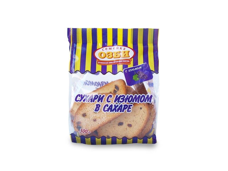 Классические сухари с изюмом, посыпанные сахаром. Приготовлены традиционным опарным способом, благодаря чему тесто получается несравнимо более пышным