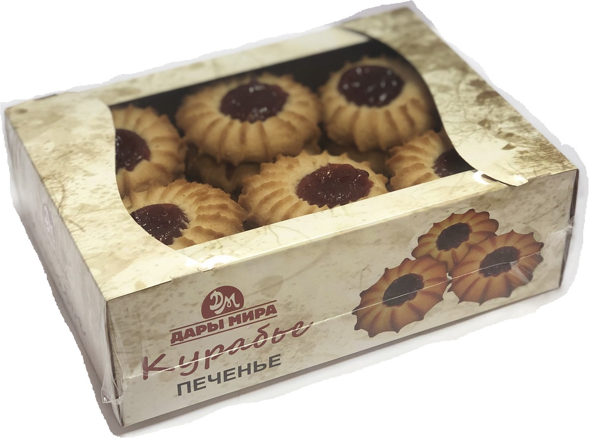 Мука в/с, сахар, маргарин (рафинированные, дезодорированные растительные масла в натуральном и модифицированном в виде, вода питьевая, эмульгатор Е47, У475, соль повренная пищевая, краситель аннато-куркумин, регулятор кислотности - лимонная кислота, ароматизатор), яйцо куриное и повидло.
