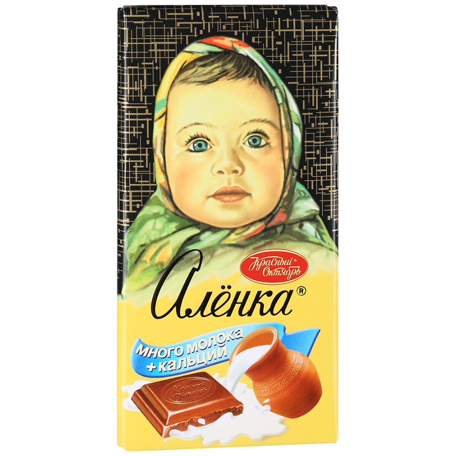 Сахар, сухое цельное молоко, масло какао, какао тертое, эмульгаторы, Е476, ароматизаторы. Противопоказан при индивидуальной непереносимости молока. Массовые доли сухого общего остатка какао не менее 32%, сухого обезжиренного остататка какао не менее 5.9%, сухого обезжиренного остататка молока не менее 15.2 %, молочного жира 5.4%. Возможно наличие незначительного количество фундука и миндаля.