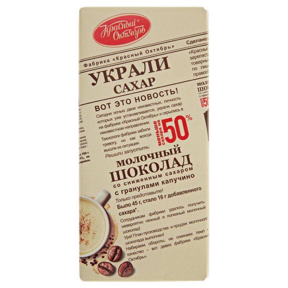 Шоколад молочный с гранулами капучино 90г Красный Октябрь