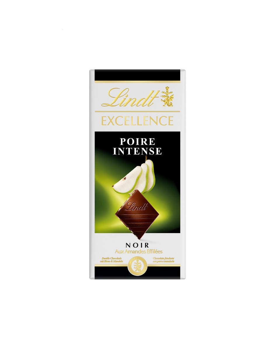 Превосходный темный шоколад с грушей и кусочками миндаля. Откройте для себя непревзойденный темный шоколад Lindt Excellence - Отборные ингредиенты и какао-бобы высокого качества