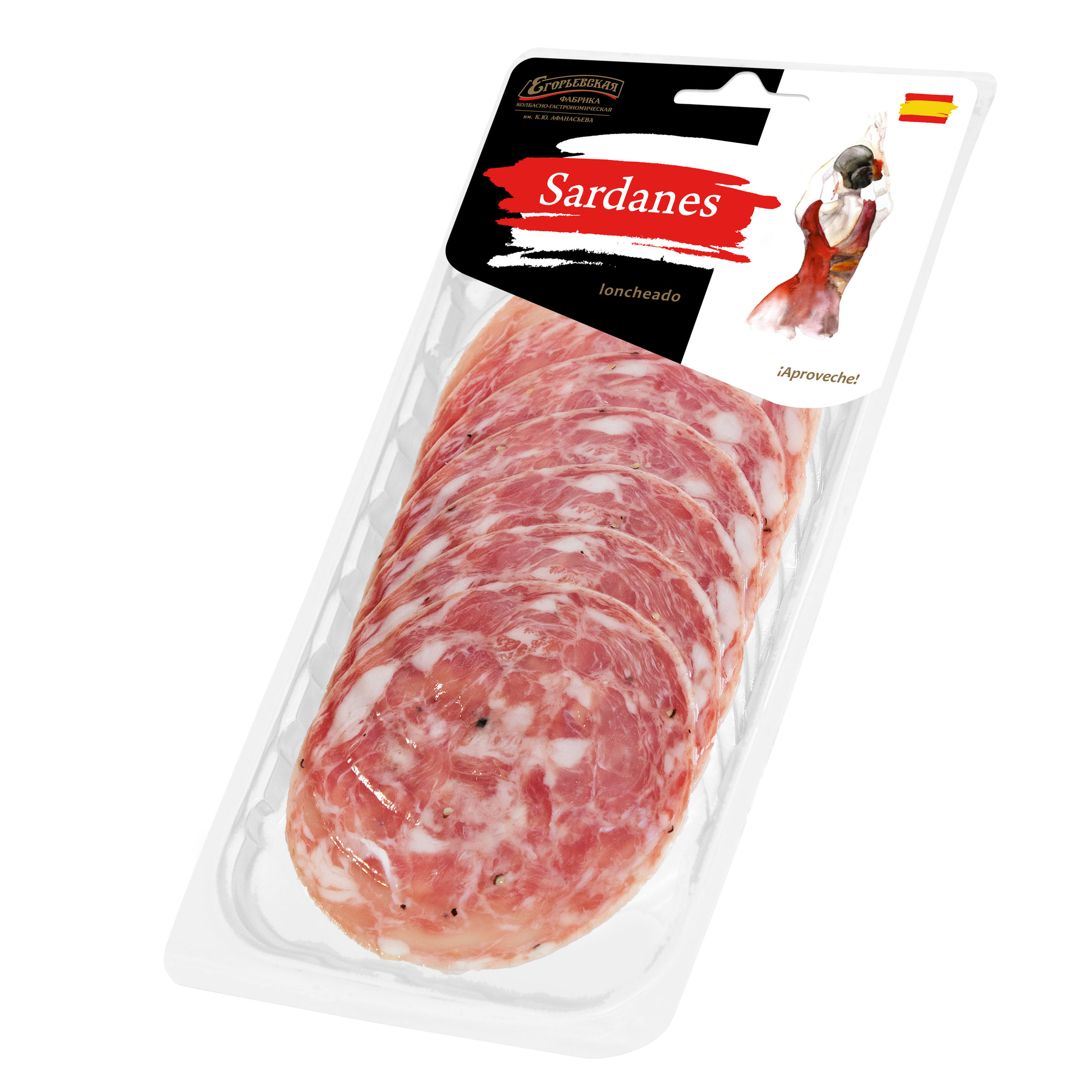 Сардана - типичная испанская сырокопченая структурная свиная колбаса. Она отличается красивым мраморным срезом и достаточным количеством жирной свинины в составе. Именно благодаря этому ингредиенту продукт имеет нежную структуру, завидную сочность и особенную душистость.