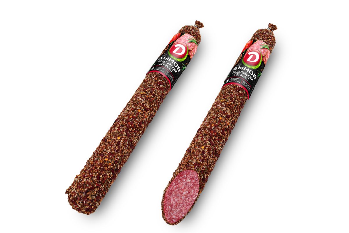 Мяс. пр. Из. кол. с/к. Кол п/с Серв "Бельгийский" , вес. св, шп, гов ,сол, пш вол, спец (пер бел), сах, ус вк и аром, антиокис, пш к л, крас (кар), ст кул, ф. окр. Декор обс: кор, папр, кунж, жел пищ. ТУ 9213-018-57084488-15.П.ц 100г пр срзн : б 16,0г , ж 46,0г , э н.ц –47 78 ккал/2000 кДж Годен 3 сут., в нар.12ч. при t от 0 _+15°С. ООО Дымовское колбасное произв.