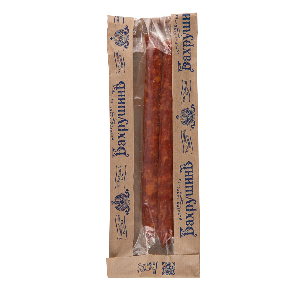 М пр-т. Из кол-е с/в п/с ТУ 9213-010-42463180-14 Охл. Гот к упот. Уп в/у Сос:свин,нитр-о-посол см(соль пищ, фикс окр Е250), э-р спец (пер черн, чесн),с-ь пищ,с-р,усил в-а и аром Е621,ант-ь Е301,м бел,аром,старт кул-ры.Пищ и э ц на 100 г п-а(ср зн):б-21г,ж-40 г,к—44 0 ккал/1840кДж.С г—45 с.У х при t от 0 до +6С,и от в воз не более 75%.Посл нар цел-ти потр упак-не б 5 с до ис с г уп прод.