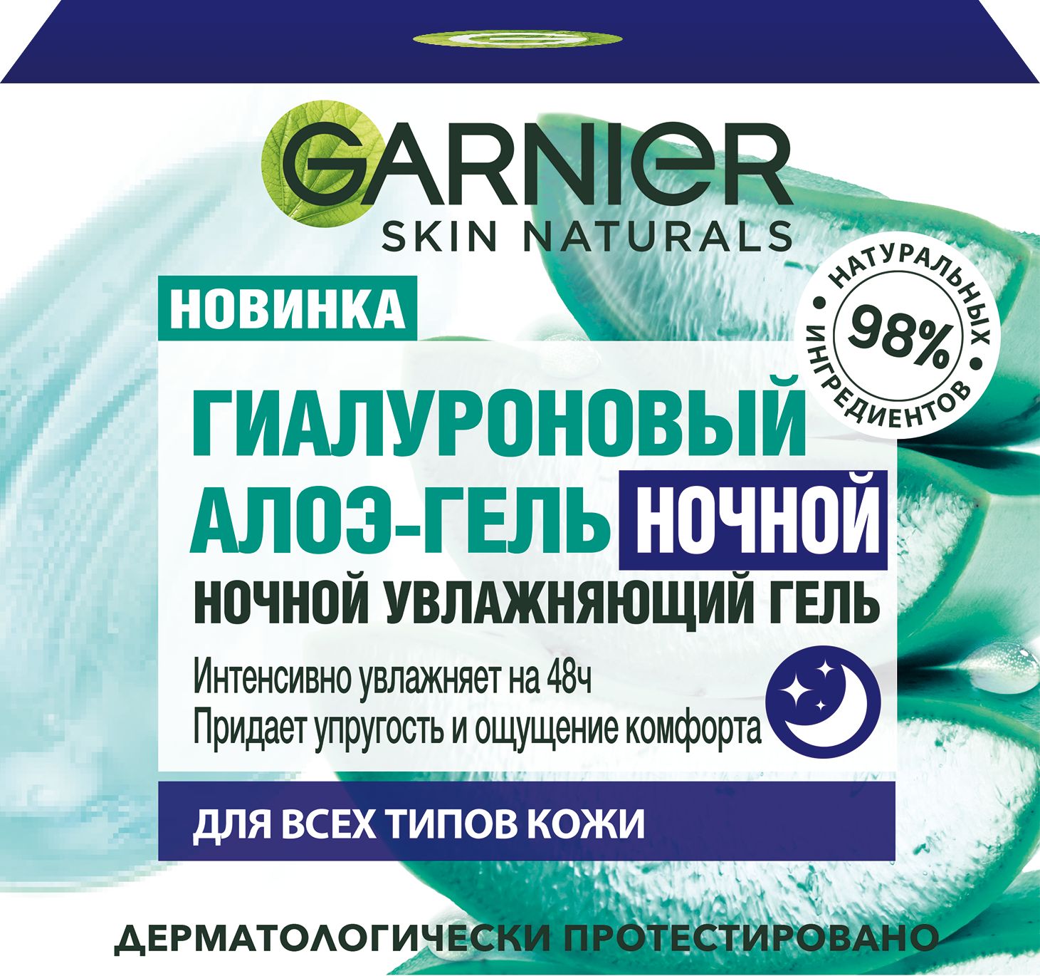 Как действует Гиалуроновый Алоэ-гель? Ночной Гиалуроновый Алоэ-гель - это увлажняющий и восстанавливающий в течение ночи концентрат с органическим алоэ вера, гиалуроновой кислотой и аргановым маслом и формулой с 98% ингредиентов натурального происхождения. После применения нашего продукта кожа выглядит более отдохнувшей. Формула с органическим алоэ вера утоляет жажду кожи, интенсивно увлажняет. Гиалуроновая кислота в двухкратной концентрации получена путем биоферментации. Ее молекулы способны удерживать влагу в 1000 раз больше массы собственного веса для наполнения кожи влагой. Аргановое масло для более упругой и мягкой кожи.