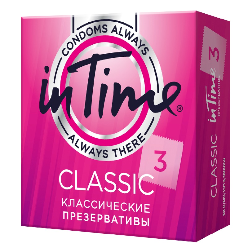 Презервативы из натурального латекса гладкие в силиконовой смазке in Time® Classic (Классик). Классическая форма, естественность ощущений и ничего лишнего.