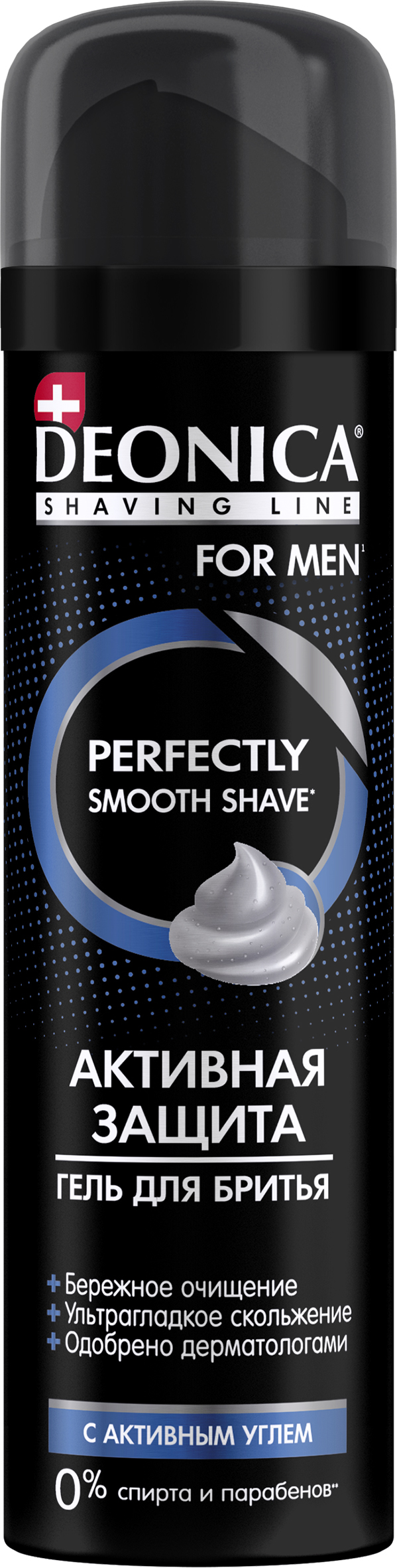 Deonica For Men Гель для бритья с черным углем Активная защита 200мл Специальная формула линейки для бритья «Активная защита» с черным углем притягивает загрязнения и излишки кожного жира, обеспечивает легкое бритье и очищение кожи. Легкое бритье без раздражений. Бережное очищение кожи. Гель для бритья — средство 2 в 1: подходит для умывания и для бритья. Алюминиевый баллон — гарантия комфортного использования, не корродирует от внешних воздействий и не оставляет желтых следов на раковине.