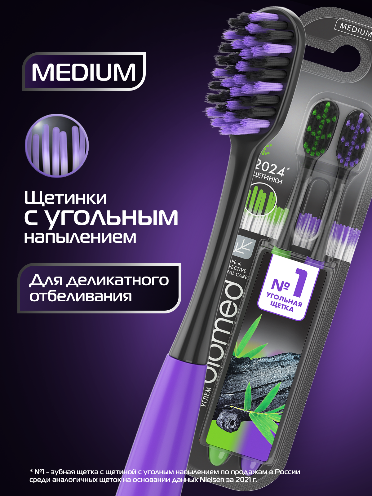 Набор комплексных зубных щеток Biomed Black: 2в1 щетка в уникальном цвете! – N1 угольная зубная щетка с закругленными кончиками обеспечивает эффективное и безопасное удаление зубного налета – Уникальный фиолетовый цвет зубной щетки BIOMED BLACK только в наборе; – Мы заботимся о планете и предлагаем сдать зубную щетку в переработку. Для лучшего эффекта используйте щетки с новыми натуральными пастами Biomed.