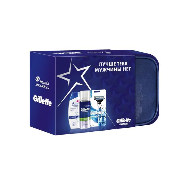 Сделайте ему подарок, который он оценит: подарочный набор Gillette и Head&Shoulders! В набор входят бритва Gillette Mach3 Start с 1 сменной кассетой, пена для бритья Gillette Series для чувствительной кожи 100 мл, шампунь Head&Shoulders Основной уход 90 мл и дорожная косметичка для путешествий.