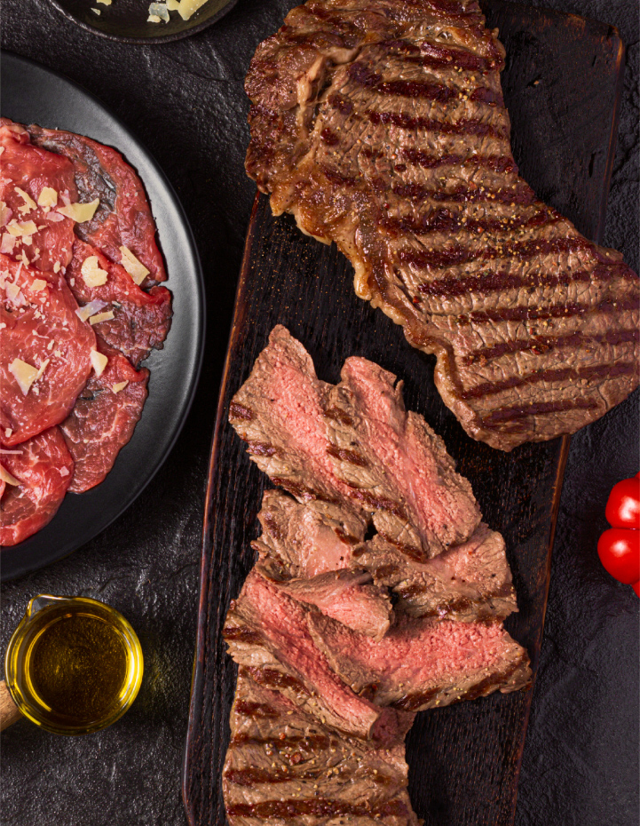 Не успеете оглянуться, как ужинаете нежным мясом. Два сочных премиальных стейка и аппетитное карпаччо на закуску.