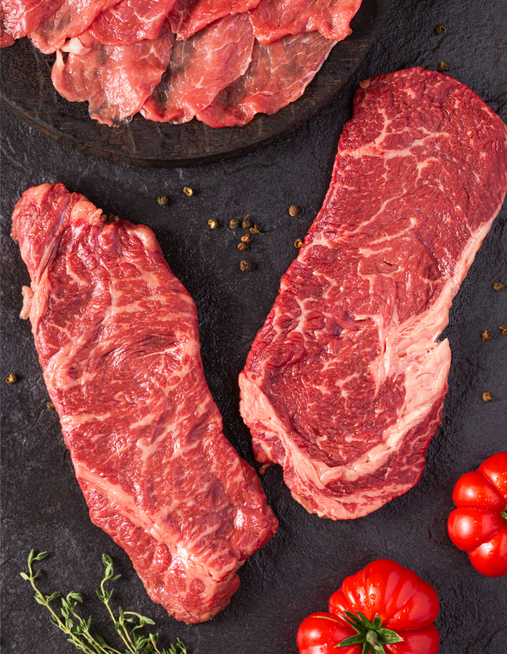 - Стейк Рибай из мраморной говядины Black Angus, грейд мраморность Prime, 390г