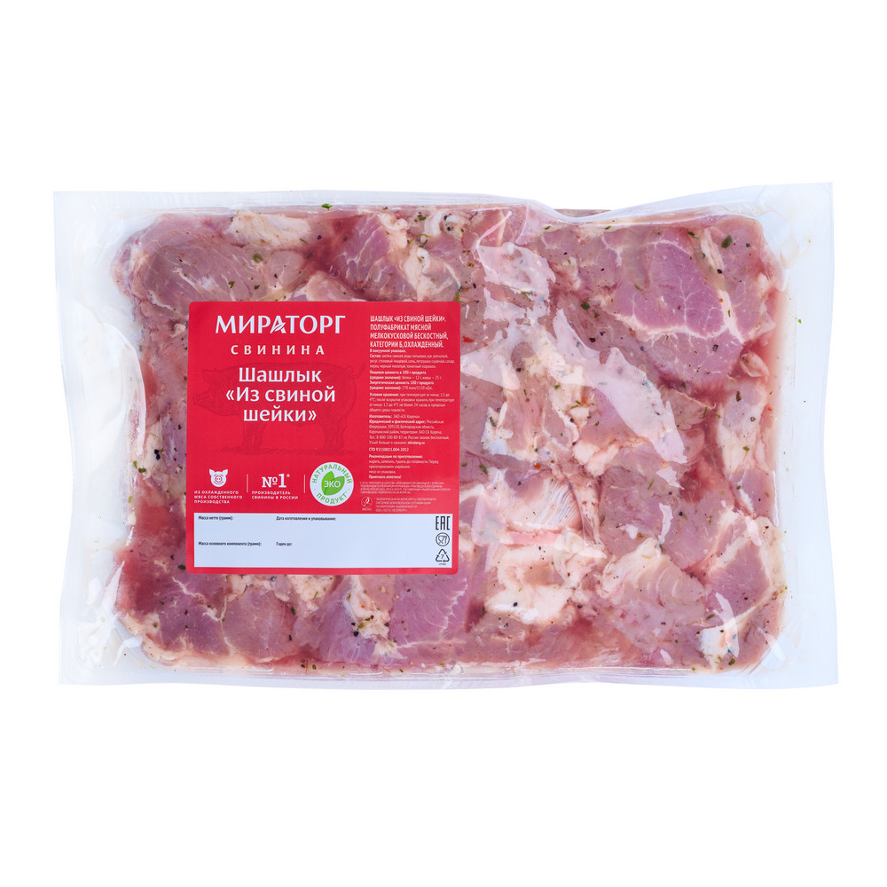 Шашлык "Из свиной шейки" от Мираторг — это нежная свиная шейка с натуральными специями. Мясо порезали аппетитными кубиками и сдобрили особенным маринадом — то, что нужно для вкусного шашлыка. Продукт готов к приготовлению на огне.